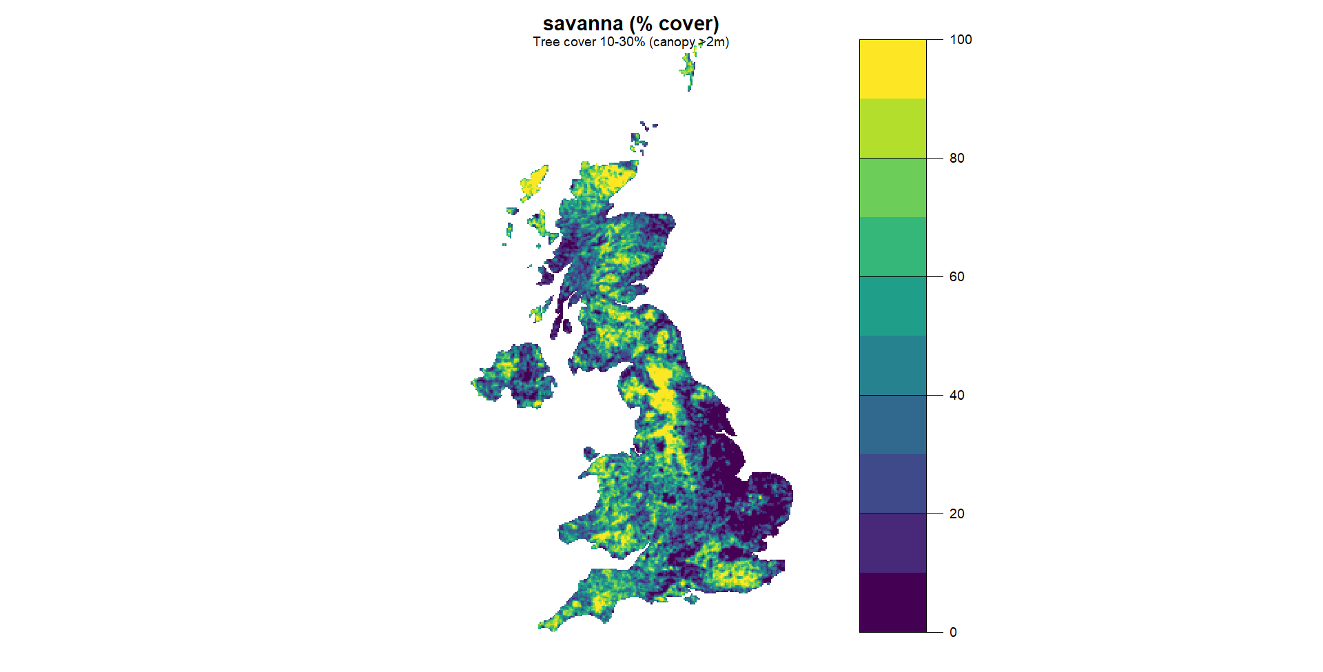 For example, the variable “savanna” defined as “tree cover 30-60% (canopy >2m), was more relateable when mapped: