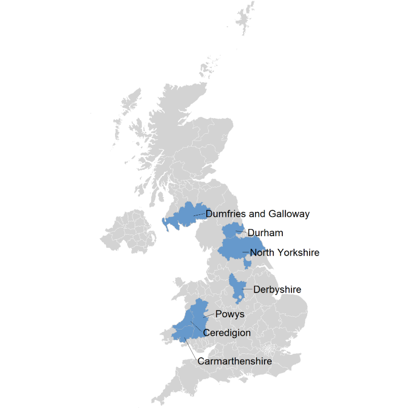 Raw data from the survey were not made publicly available, but it was reported by the RSPB that Willow Tit populations were highest in the following counties: